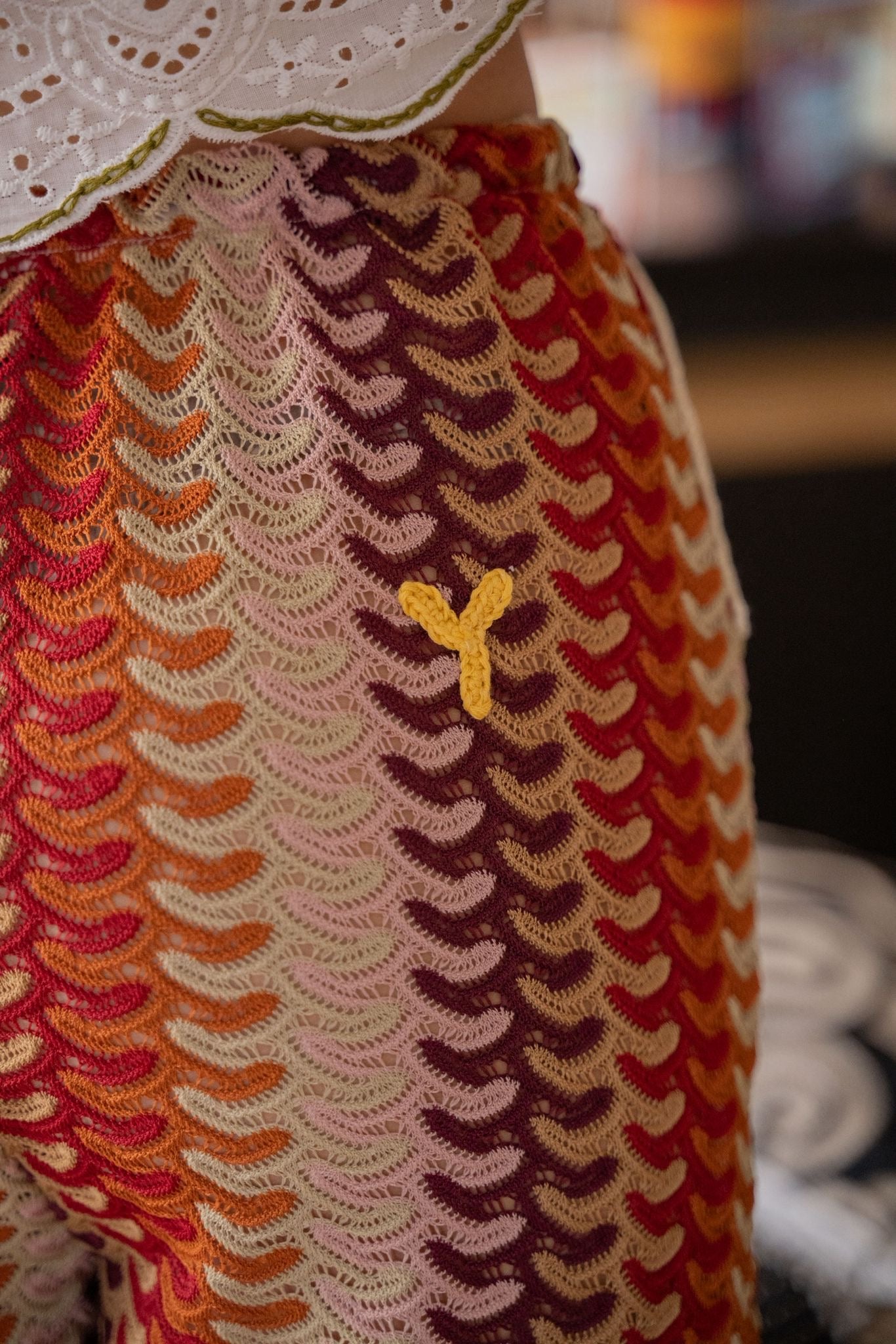Pantalon à la coupe ample et légère, orné de motifs multicolores effet crochet. Il est doté de deux poches sur le devant et d’une taille resserrée par un lien à nouer avec pompons.