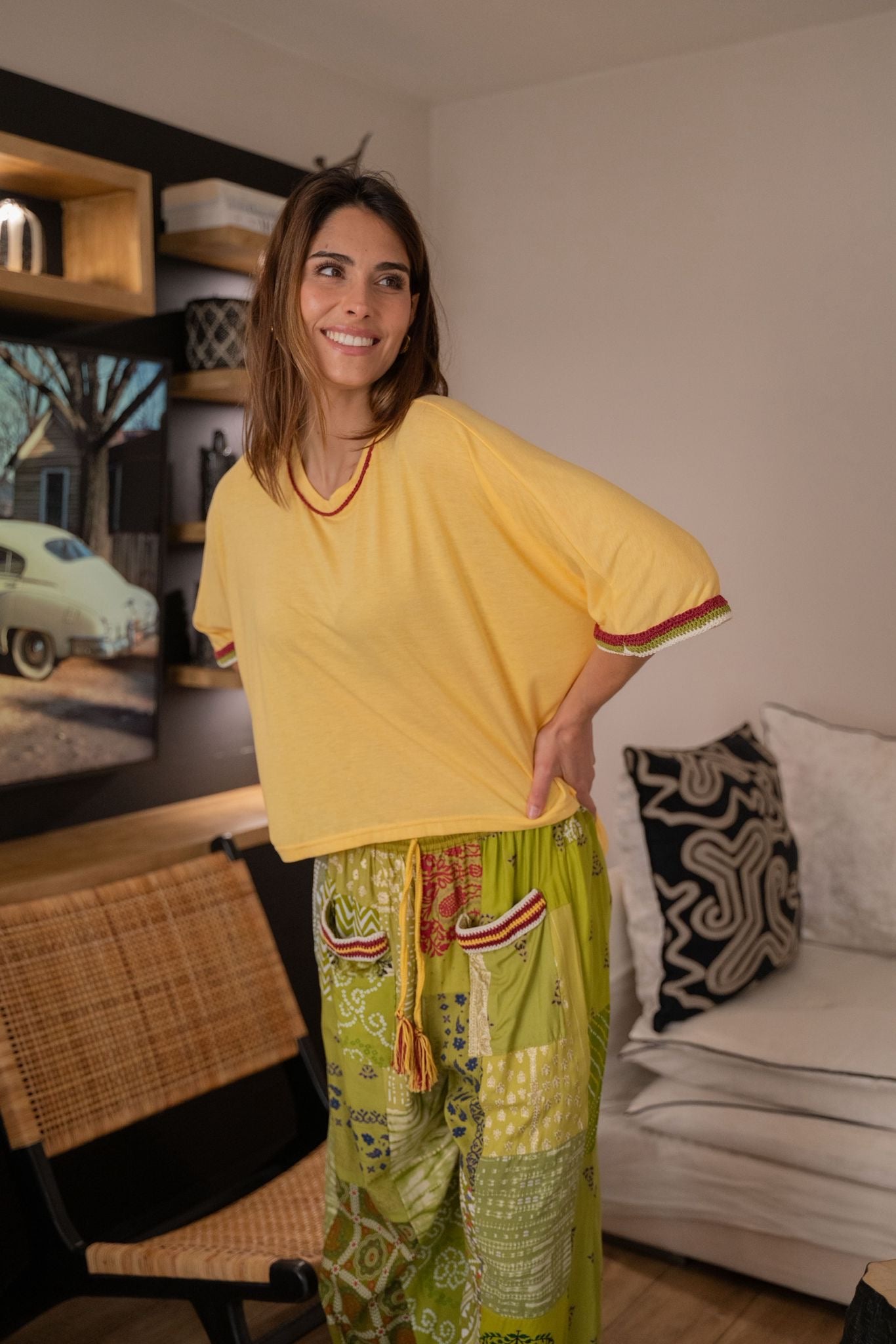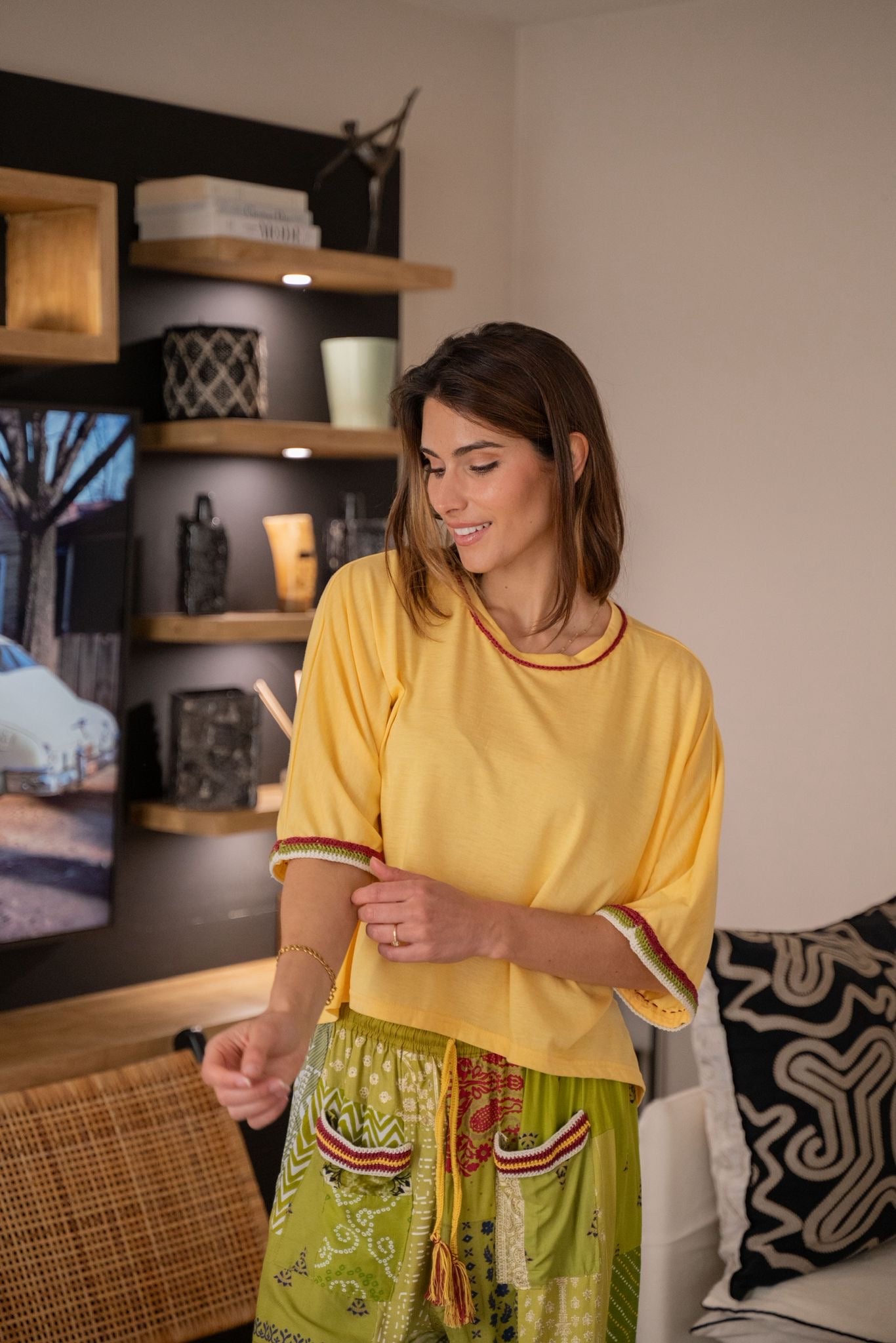 Une pièce confortable et originale, parfaite pour un look casual et ensoleillé. ☀️