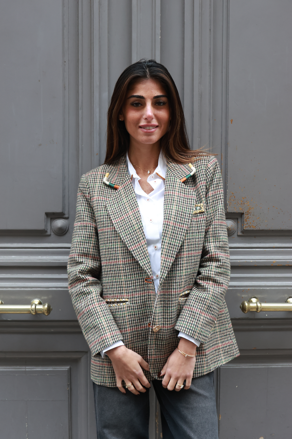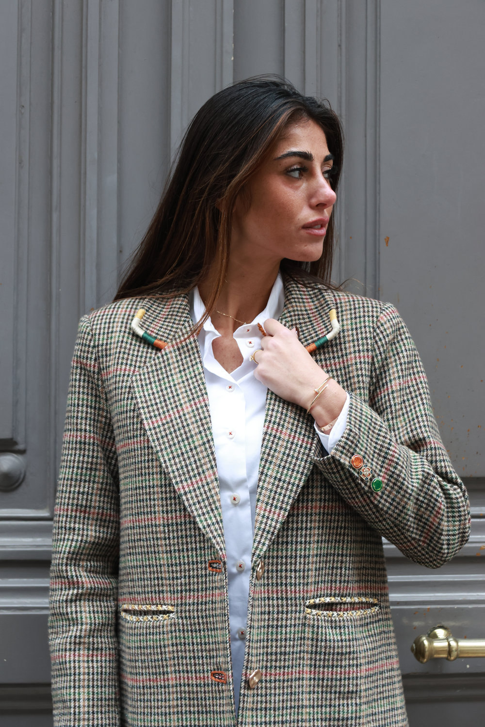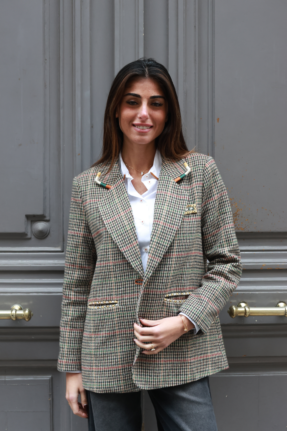 BLAZER PIED DE POULE BEIGE, broderie