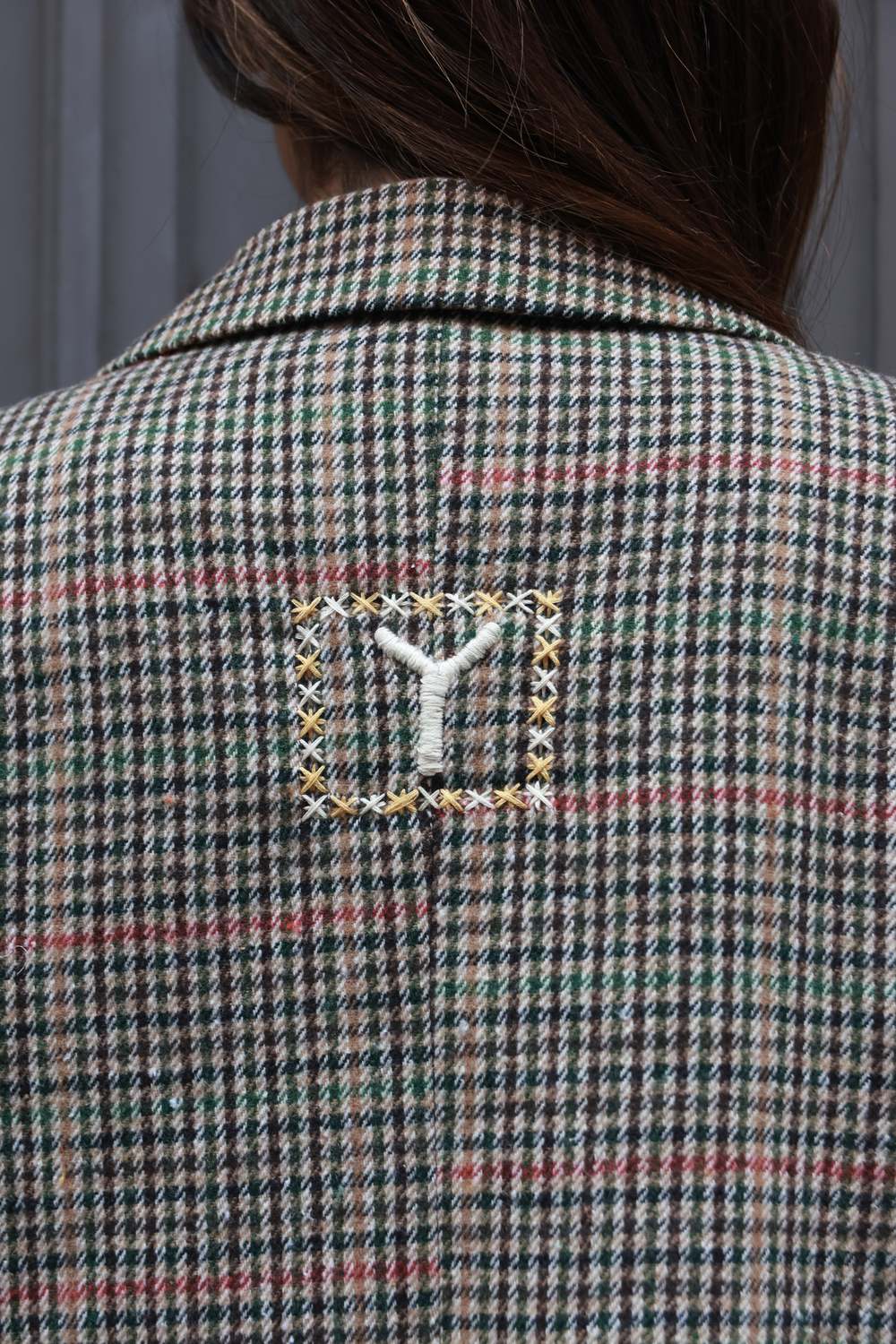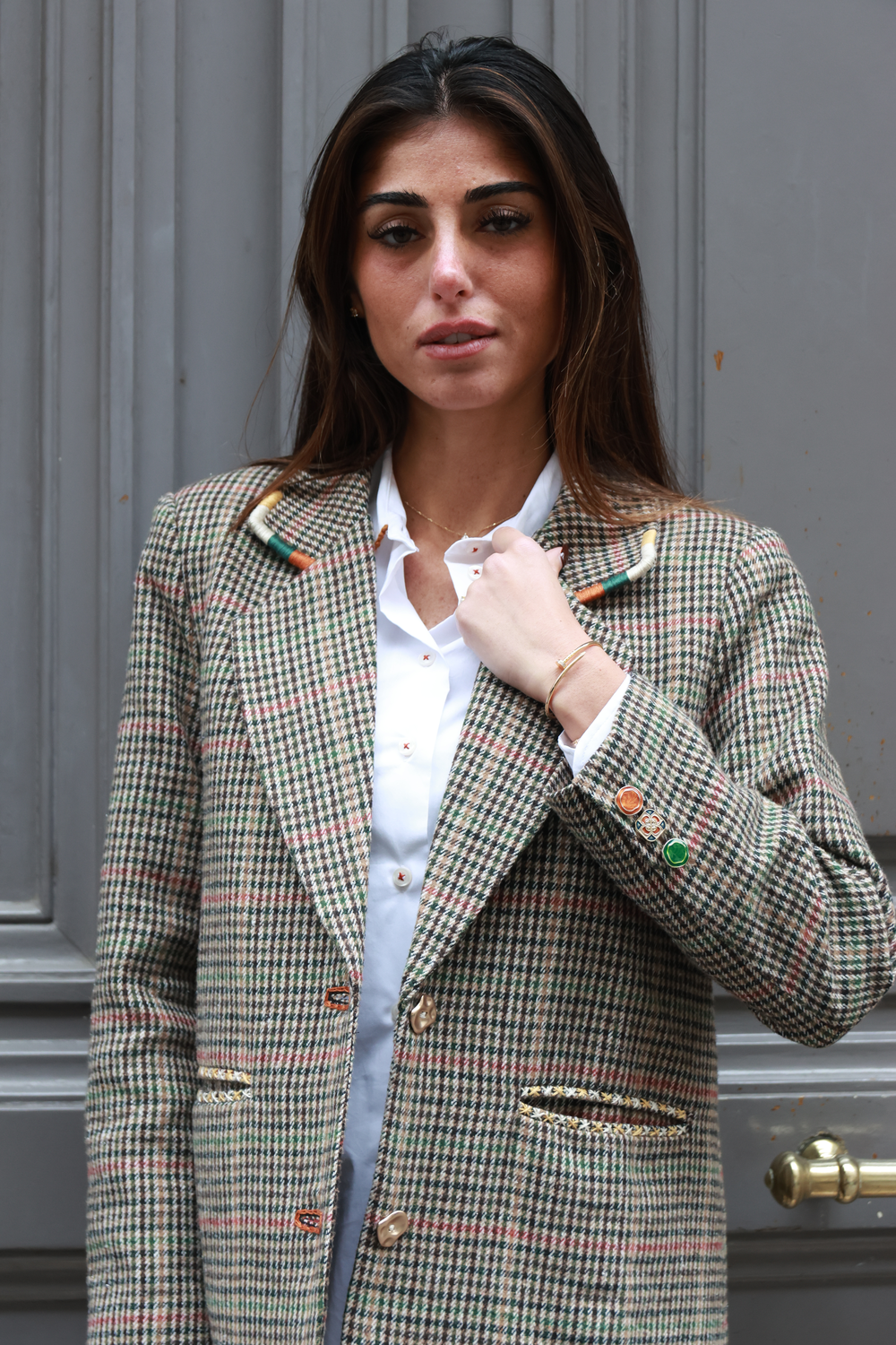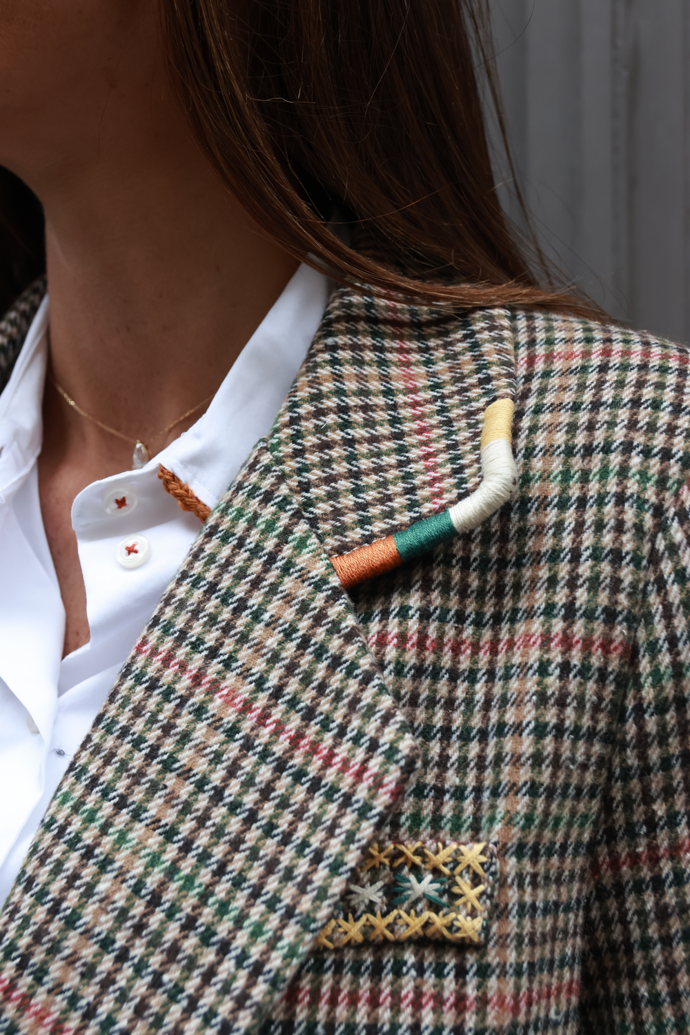 BLAZER PIED DE POULE BEIGE, broderie