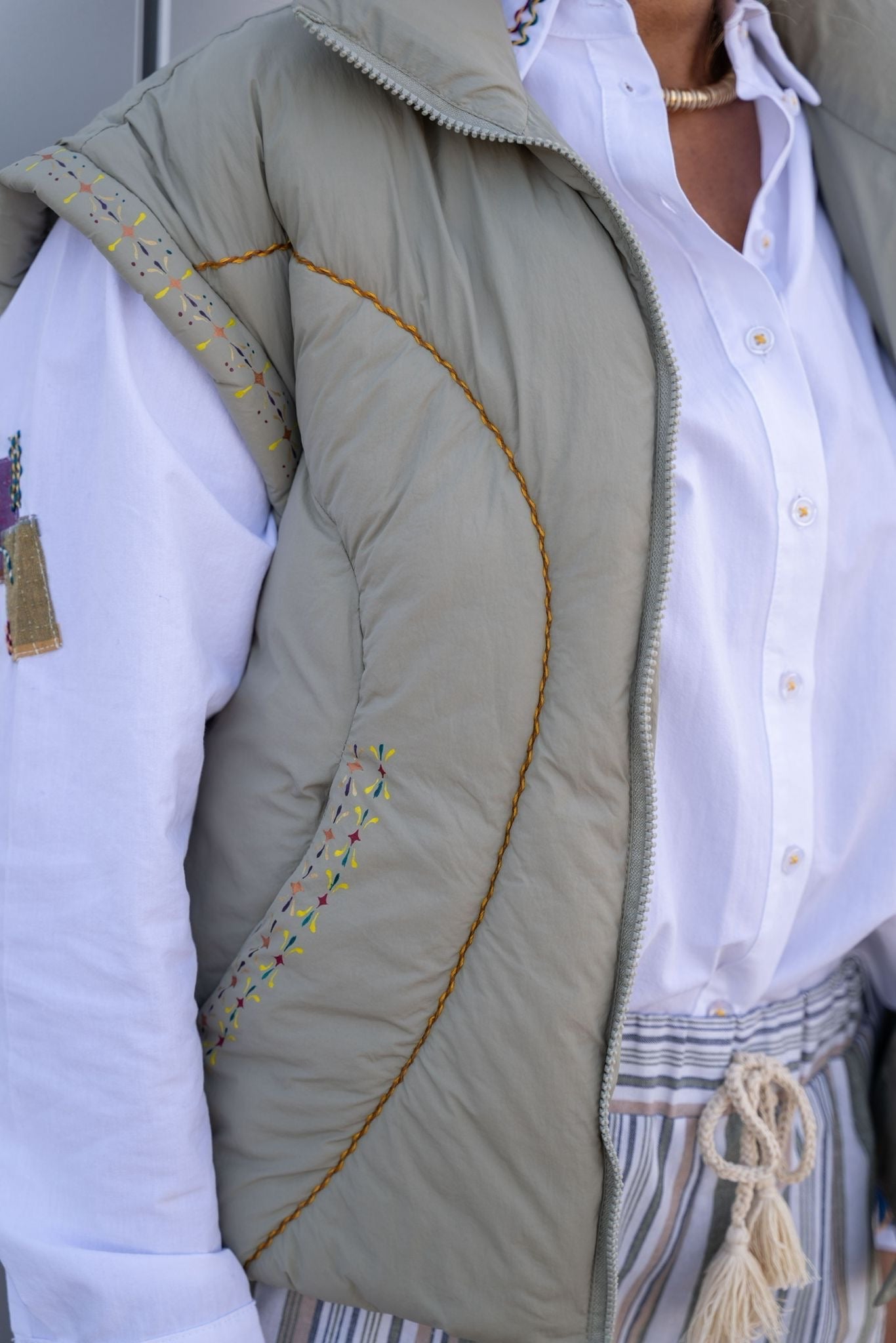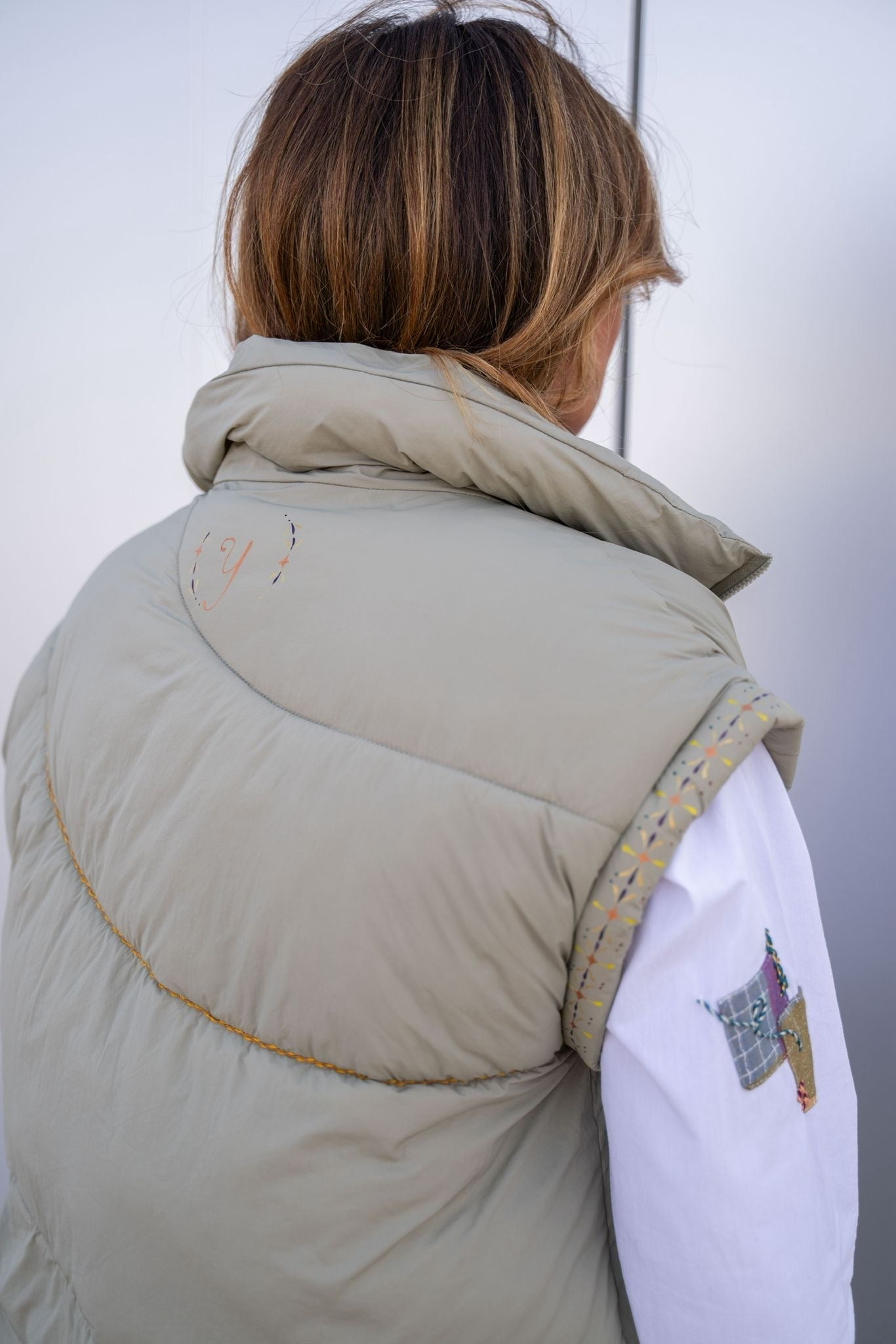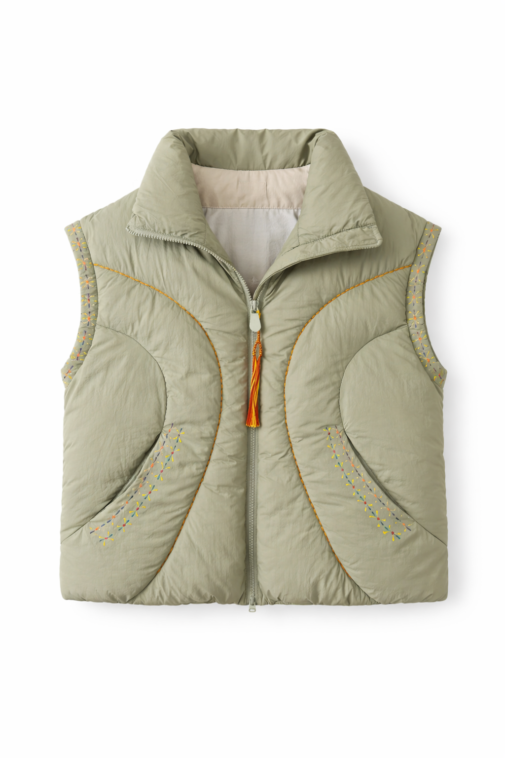 Doudoune matelassée sans manches au coloris vert sauge, légère et confortable.
