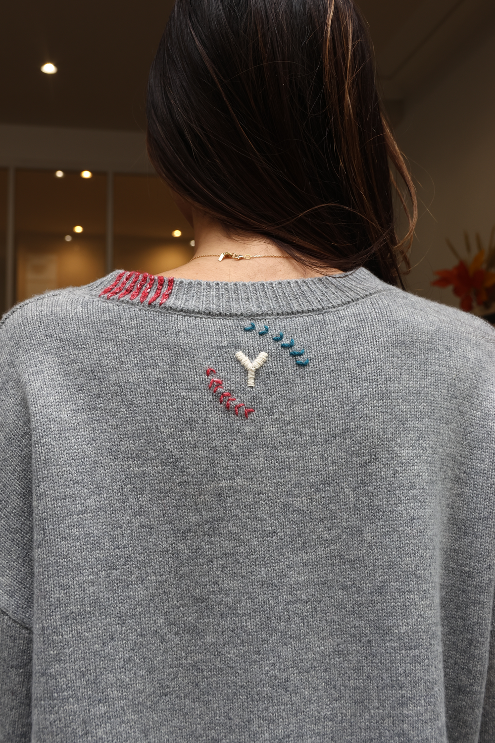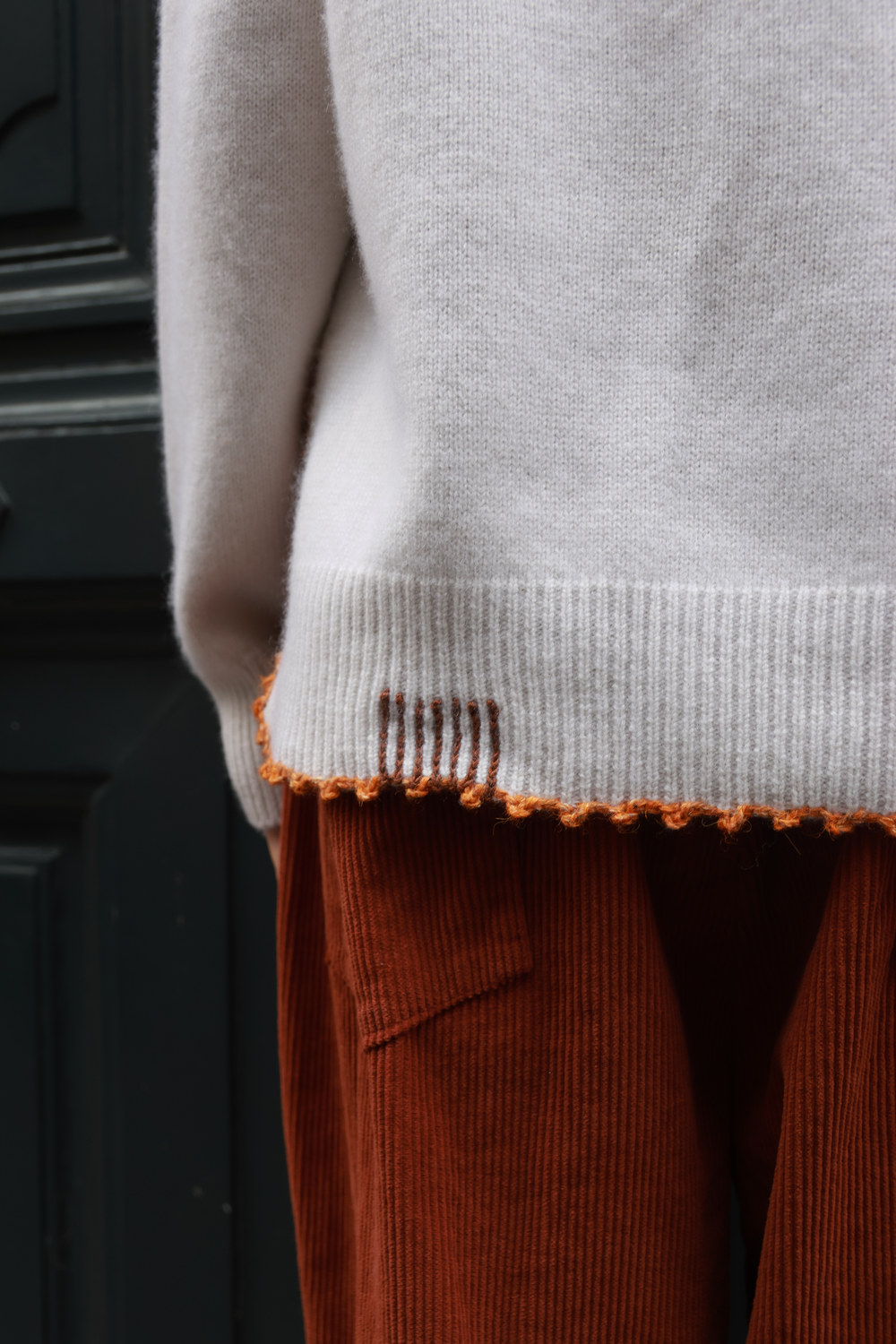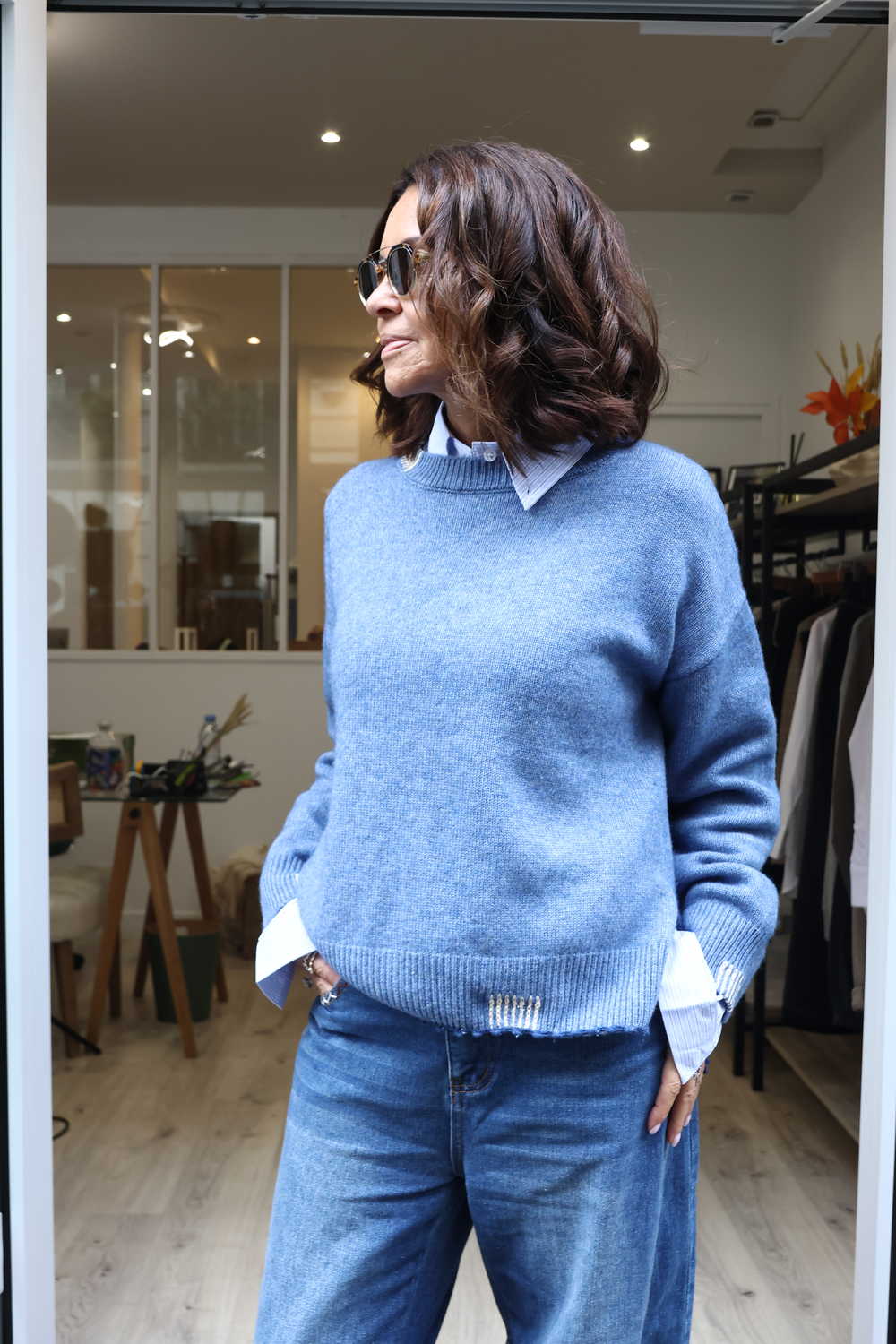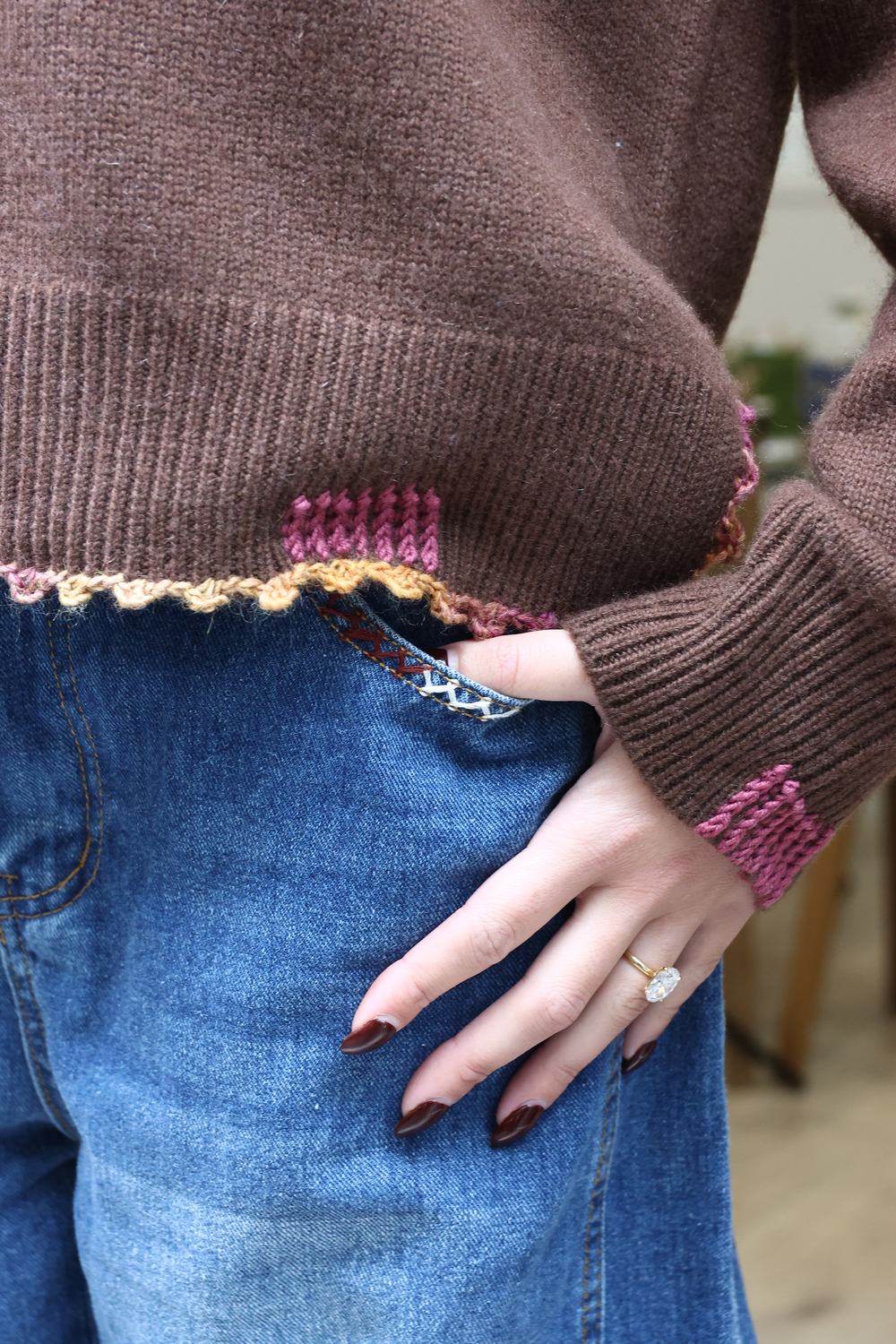 Pull en cachemire, disponible en différents coloris, avec détails au crochet.