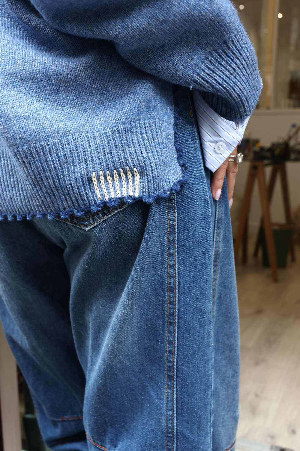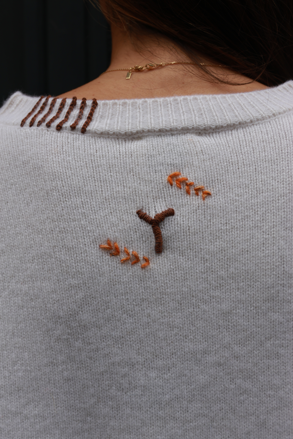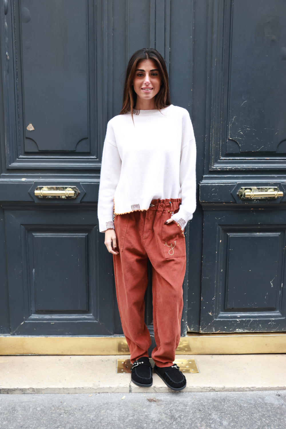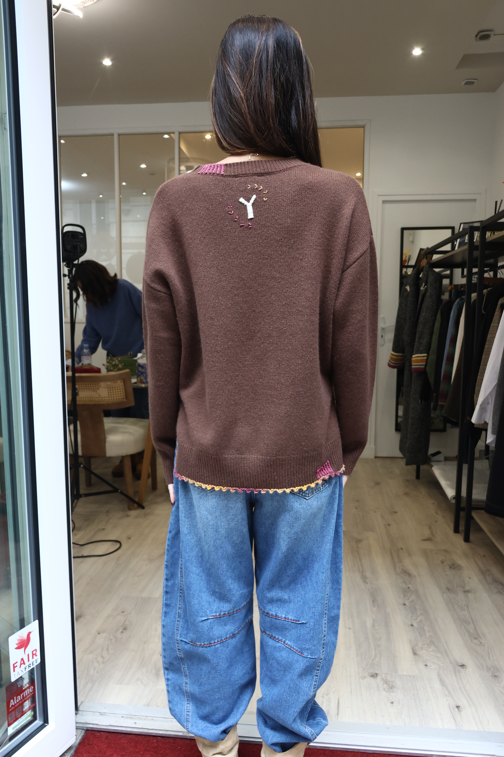 Pull en cachemire, disponible en différents coloris, avec détails au crochet.